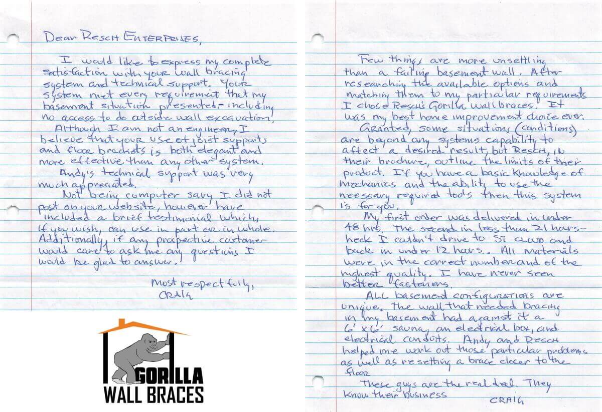 When my basement walls started bulging inward I got estimates from other basement companies… It was nice to have a DIY solution to fix a bowing basement wall myself. Not only did Gorilla Wall Braces save me money – it was reassuring that their design went through engineer testing. Definitely would recommend!